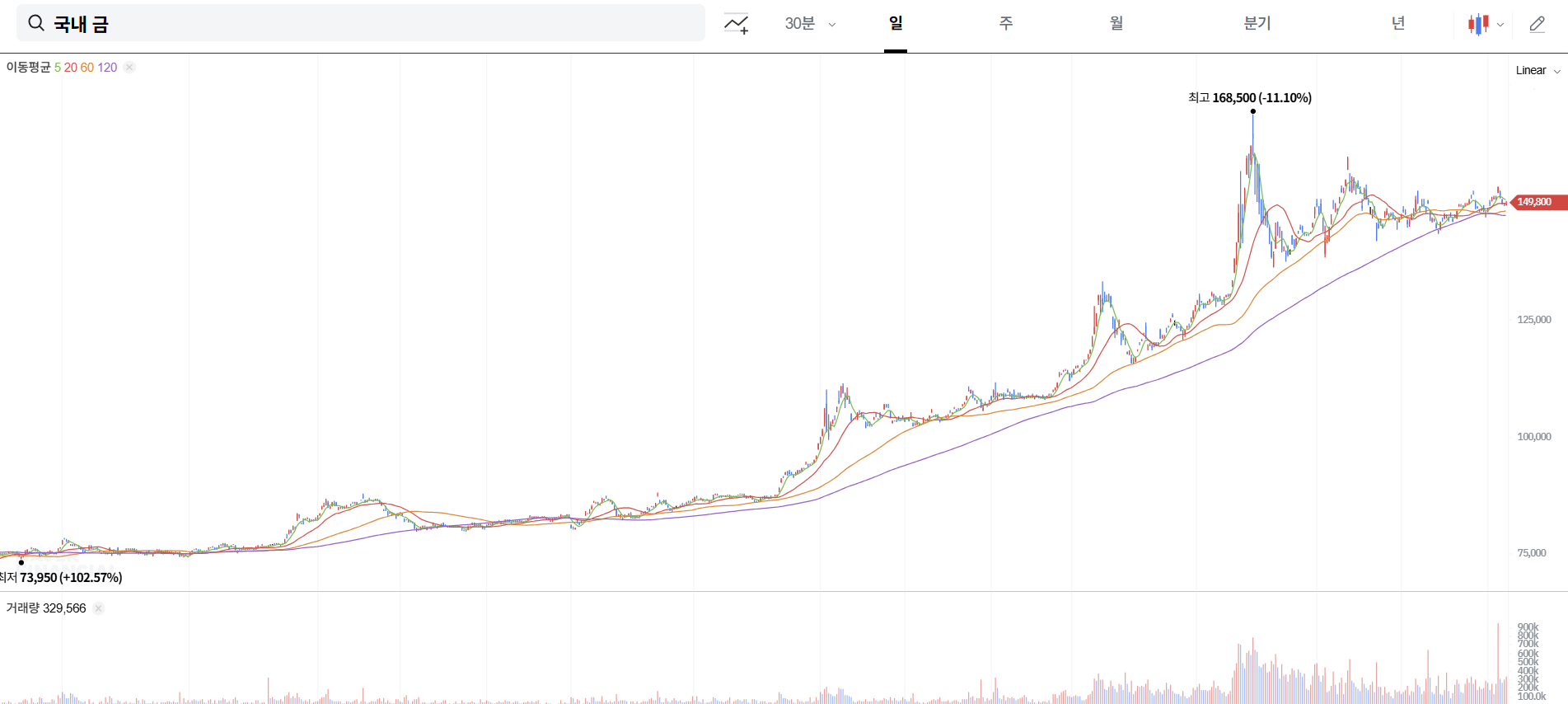 - 지금: 149,800원 → 사실상 사상 최고치 부근